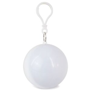 Original porta-chaves em forma de bola que guarda um poncho dobrável para a chuva.