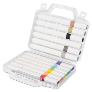 Conjunto de 12 marcadores acrílicos de cores sortidas, apresentados numa pasta transparente. A sua tinta...