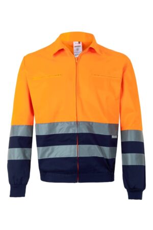 Fecho central com fecho de correr Faixas refletoras no torso e nas mangas Cós lateral...