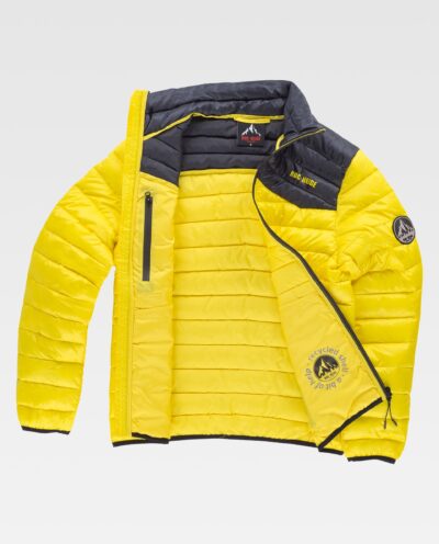Exterior: 100% Poliéster reciclado. Enchimento: 100% Poliéster. Forro: 100% Poliéster.