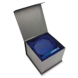 Cristal com uma base e talhado em forma redonda sobre o mesmo Inclui luxuoso estojo...