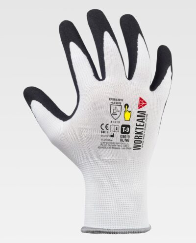 Luvas de 13 galgas, com suporte de poliéster e revestimento de nitrilo microporoso. O nitrilo...