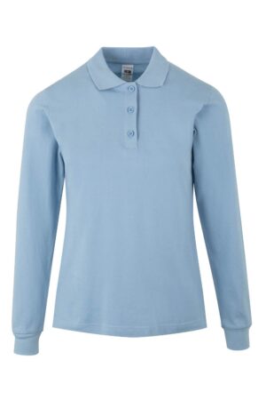 Polo MULHER manga comprida. Malha Piqué. 100% Algodão RingSpun pré-encolhido. 210 g/m². Carcela com 3...