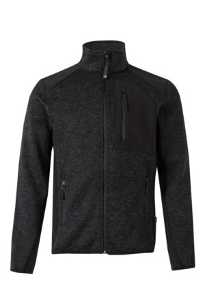 Fecho central com fecho de correr invertido em cor contraste Área de tecido soft shell...