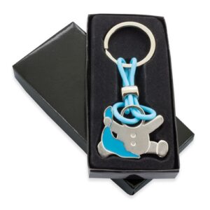 Cada porta-chaves numa bolsa individual com fecho adesivo e cartão branco