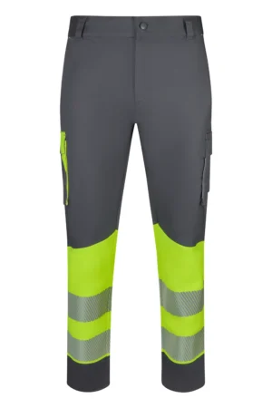 Calças stretch reciclada bicolor com faixas segmentadas